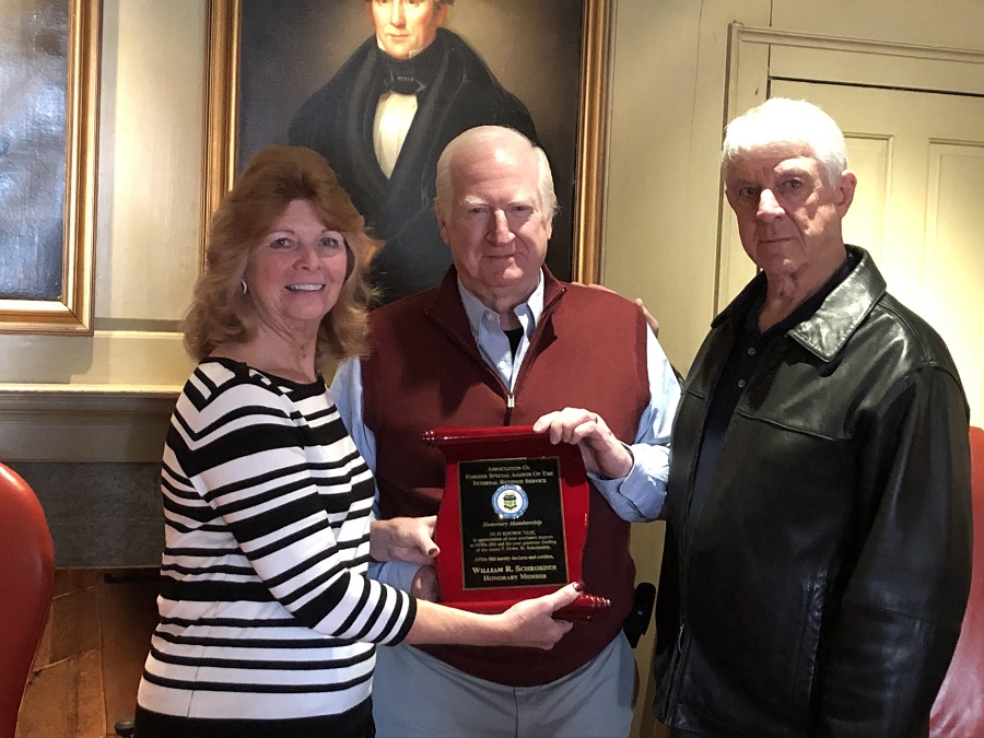 On December 4, 2019, Past President Peggy Thomas and Parliamentarian Bob Armentrout met with William R. Schroeder and presented him with an AFSA Honorary Membership.